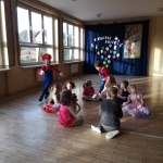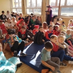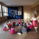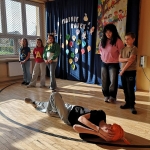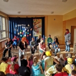 Na sali gimnastycznej odbyło się głośne czytanie baśni przez nauczycieli naszej szkoły oraz zagadki, zabawy pantomimiczne i ruchowe przy muzyce. Swoją gościnnością zaszczycili nas w tym również przedszkolaki, co sprawiło nam ogromną radość.